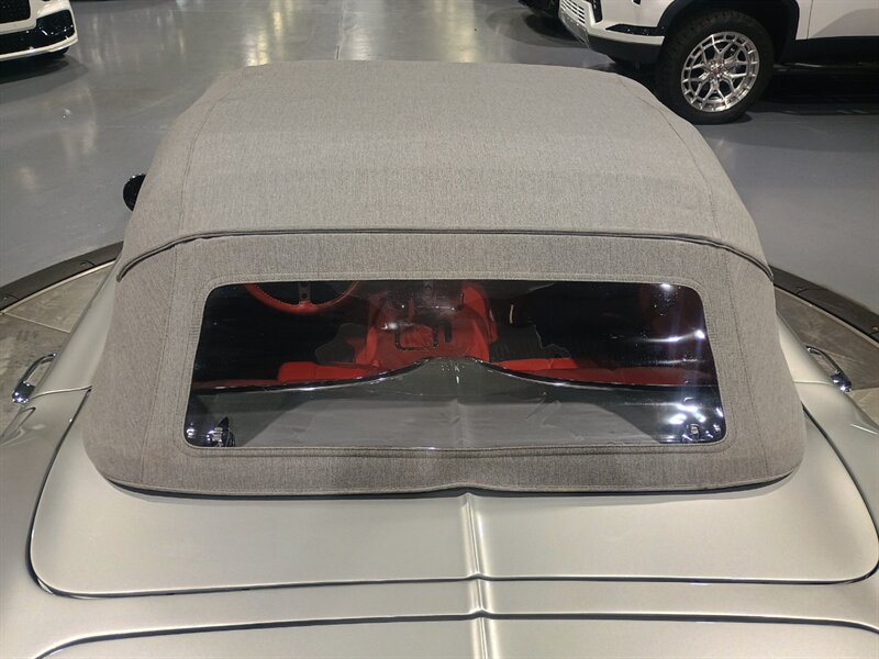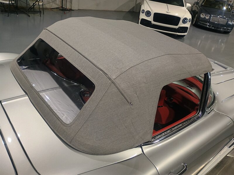 This Super Clean Classic 1961 Chevrolet Corvette convertible Restomod finished in Silver with a Red leather interior and powered by a modern 6.2L V8. The car retains classic factory C1 appointments in detail: fiberglass body, folding soft convertible top, chrome front and rear bumpers and grille, signature dual round taillights, twin bucket seats with center console, three-spoke steering wheel, full analog gauge cluster (speedometer, tachometer, fuel, oil pressure, temperature and ammeter), factory heater/defroster, manual roll-up windows, original-style wheels and four-wheel drum brakes. Documented under 2,000 miles total (averaging less than 1,000 miles per year) and presented in excellent overall condition.