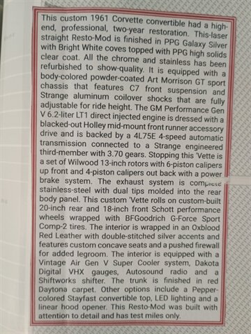 1961 Chevrolet Corvette Restomod C1 convertible