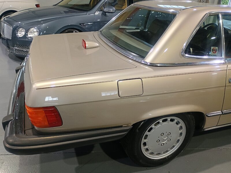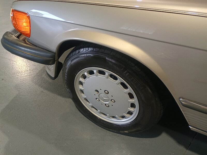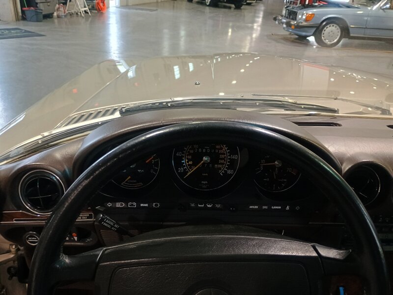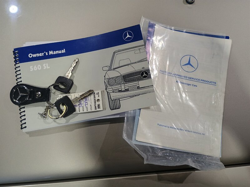 This Super Clean Classic 1987 Mercedes-Benz 560 SL — One owner, silver exterior with rich brown leather interior, powered by a 5.0L naturally aspirated V8 (SOHC, 16V). Exceptionally low mileage under 69,000 miles (averaging less than 2,000 miles/year) and presented in excellent overall condition. Factory equipment includes an automatic transmission, power steering, power windows and mirrors, power door locks, factory air conditioning, cruise control, full leather seating with wood-trimmed center console and dash accents, removable hardtop plus folding soft top, factory alloy wheels, AM/FM cassette stereo and full instrumentation (tachometer, trip odometer). Safety and convenience specification as offered from the factory included front airbags and anti-lock braking system where originally fitted. This Super Clean Classic 1987 Mercedes-Benz 560 SL Convertible has a SILVER SAND finish with BROWN leather interior. ONLY 68K MILES! Beautiful trim that shines. Tires, wheels and finish on this vehicle are exceptional, sure to please the most discerning buyer. A true classic and exceptional example of German engineering. Call 954-401-4535 anytime for appt. to see and drive this one home today! TRADES OK!