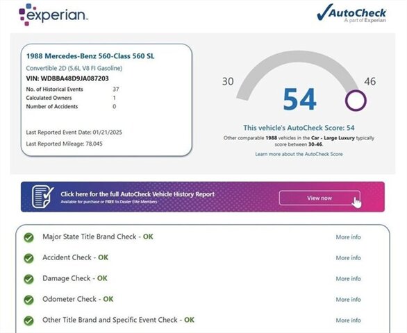 1988 Mercedes-Benz 560 SL ONE OWNER