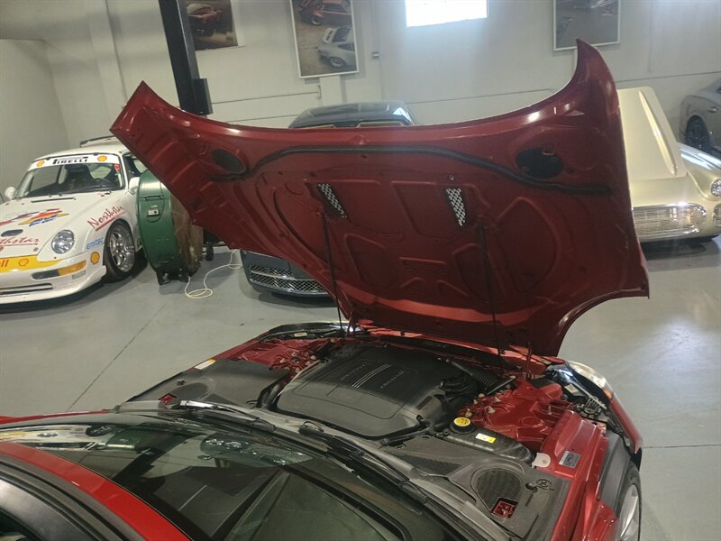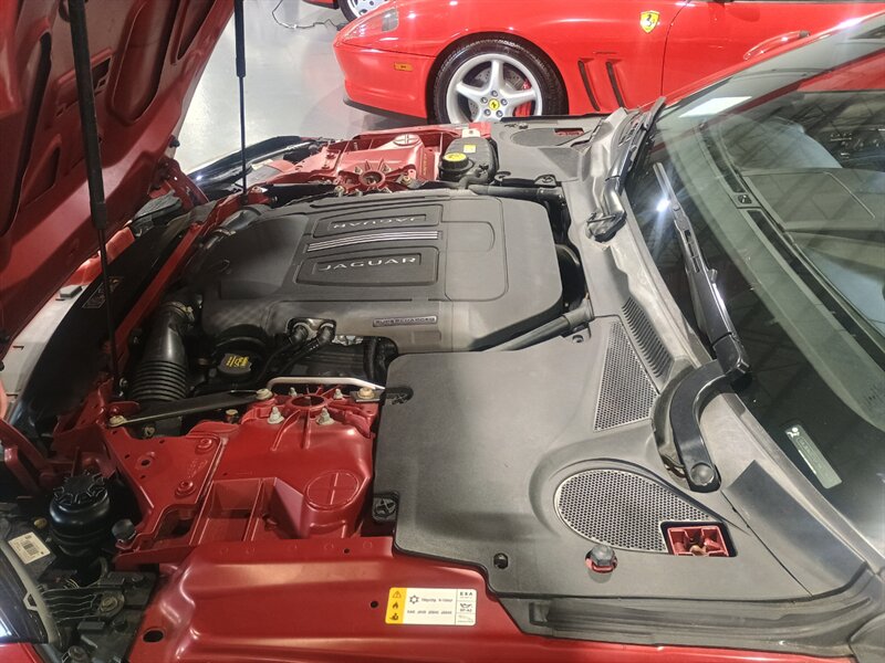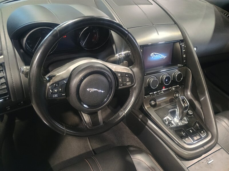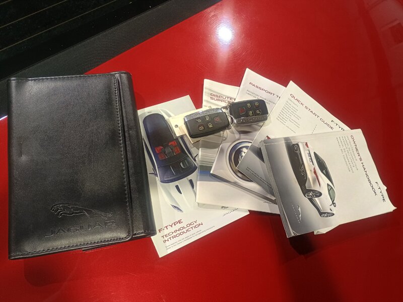 This Super clean 2015 Jaguar F-TYPE Supercharged finished in striking Salsa Red with a Jet interior and Redzone stitching — powered by the 3.0L supercharged V6 producing 340 hp and 332 lb-ft, with under 46,000 miles (averaging <4,000 miles/year) and excellent overall condition. Factory-equipped with an 8-speed automatic transmission and paddle shifters, rear-wheel drive, aluminum-intensive sport chassis, and a sport-tuned suspension for sharp handling. Interior amenities include leather sport seats with power adjustment and heating, dual-zone automatic climate control, leather-wrapped steering wheel with controls, keyless start/entry, and cruise control. Technology and safety features include a touchscreen infotainment system with Bluetooth and USB/AUX capability, premium audio, navigation-ready functionality, HID/Xenon headlights with LED daytime running lights, alloy wheels, rearview camera and parking sensors, and a full complement of ABS, traction and stability control, and airbags.