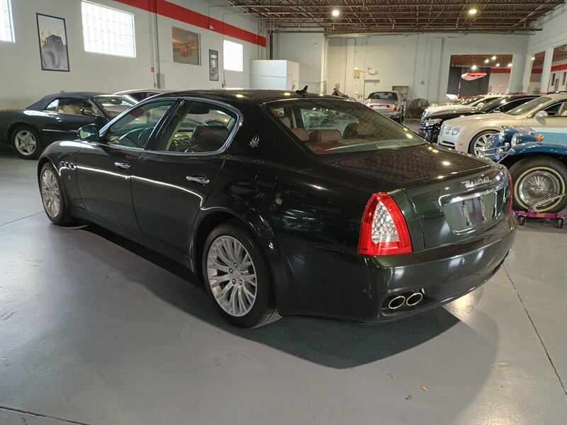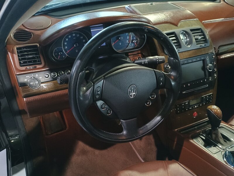 2009 Maserati Quattroporte — powered by the robust 4.2L V8 producing 400 hp and 339 lb-ft, paired with a six-speed automatic transmission with manual-shift capability. Factory-standard luxury and convenience features include full Pelle leather upholstery with handcrafted wood trim, power-adjustable front seats with memory and lumbar support, dual-zone automatic climate control, power sunroof, steering-wheel audio and cruise controls, remote keyless entry, xenon HID headlights with fog lamps, and 19-inch alloy wheels with high-performance Brembo braking. Safety and chassis systems include ABS, traction and stability control and multiple airbags. This example is in excellent overall condition with exceptional mileage — under 69,000 miles (averaging less than 4,000 miles per year).