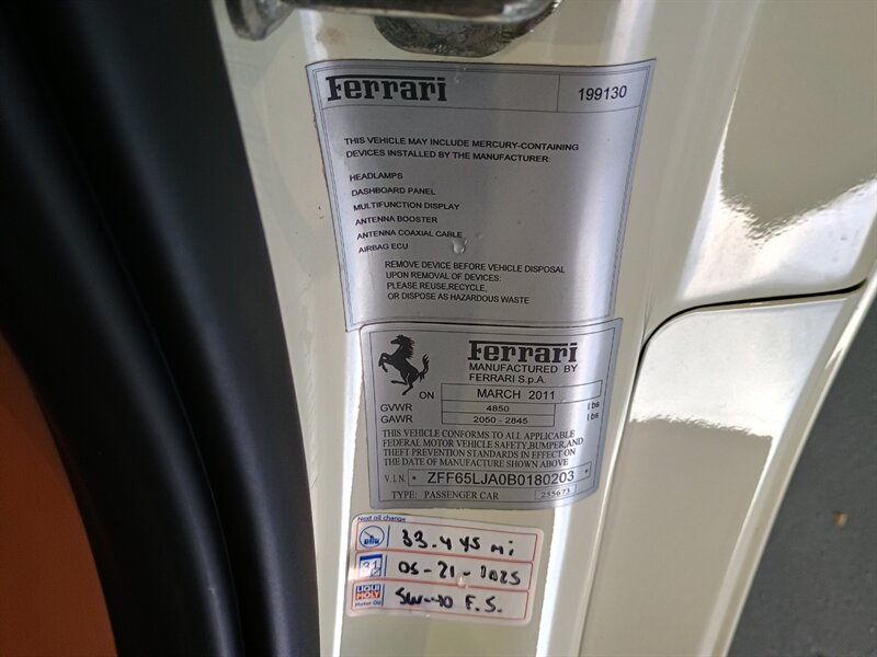2011 FERRARI CALIFORNIA IN A BEAUTIFUL WHIE WITH BROWN INTERIOR AND COMES WITH THE FACTORY SHEILDS, YELLOW CALIPERS, YELLOW TACH AND MORE