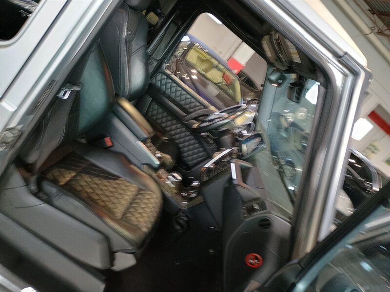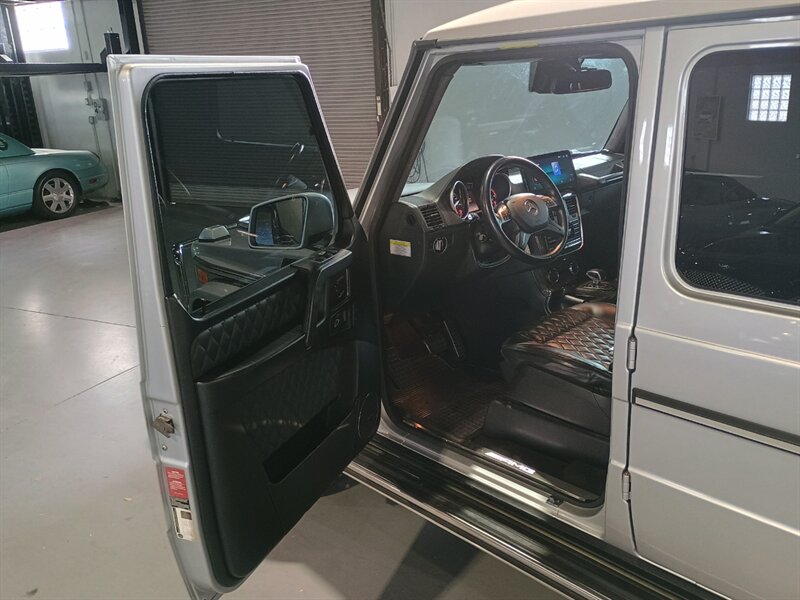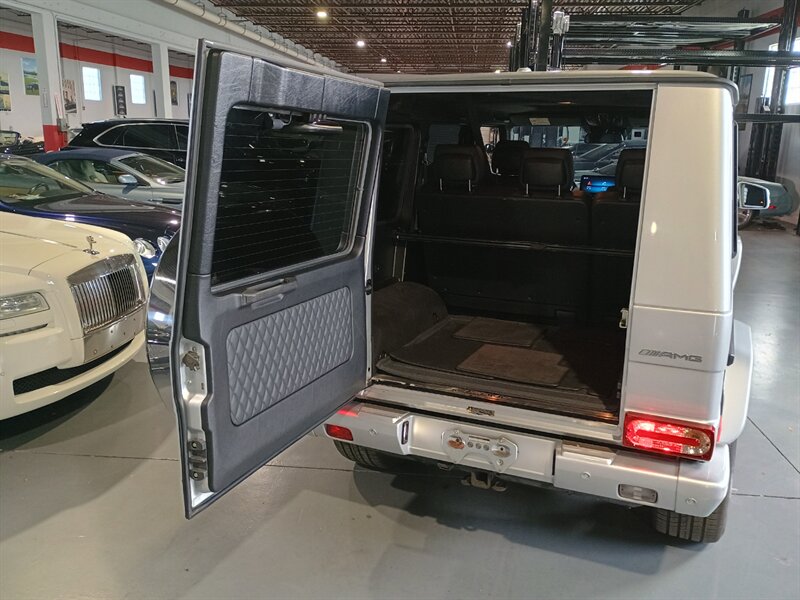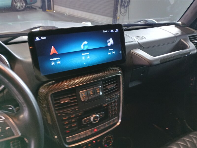 2013 Mercedes-Benz G63 AMG with a hand-built 5.5L Twin-Turbo V8 producing 544 hp and 560 lb-ft of torque; excellent overall condition with under 128,000 miles (averaging <10,000 miles/year). Factory equipment includes AMG-tuned 7-speed automatic transmission, permanent AWD with low-range transfer case and locking differentials, AMG suspension and high-performance brakes, AMG exterior styling and wheels, COMAND infotainment with Bluetooth/voice control, premium leather interior with heated power front seats and memory, dual-zone automatic climate control, HID headlamps with LED daytime running lights, rearview camera and parking sensors, full power accessories, multifunction steering wheel and cruise control, plus a comprehensive safety suite (ABS, traction/stability control and multiple airbags).