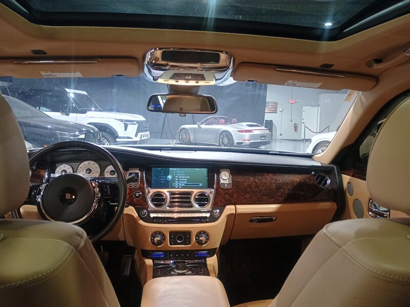 This Super Clean CELEBRITY OWNED 2013 Rolls-Royce Ghost Sedan in White with a Tan leather-trimmed interior, powered by the factory 6.6L Twin-Turbo V12 delivering 563 hp and 575 lb-ft of torque. Factory-standard luxury appointments include full Connolly leather seating and hand-finished wood veneers, power-adjustable heated (and ventilated) front seats with memory, dual-zone automatic climate control, signature stainless-steel grille and Spirit of Ecstasy hood ornament, soft-close doors, power trunk, and keyless access/ignition. Mechanical and safety features are factory standard as well: 8-speed automatic transmission, adaptive air suspension with automatic load leveling, adaptive xenon headlights, ABS, stability/traction control, parking sensors and backup camera, factory navigation, Bluetooth and a premium audio system. Exceptional overall condition with excellent mileage — under 37,000 miles (averaging less than 3,000 miles per year).
