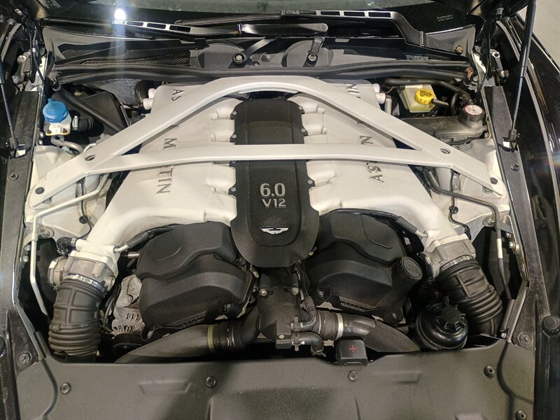 2014 Aston Martin Vanquish in Black with a Black leather interior, powered by a 5.9L V12 producing 565 hp and 457 ft-lbs. Exceptionally preserved with under 38,000 miles (averaging less than 3,000 miles per year) and in excellent overall condition.Factory-standard equipment includes a 6-speed Touchtronic automatic with paddle shifters, adaptive suspension, electronic stability and traction control, ventilated disc brakes with full ABS and advanced braking aids, carbon-fiber structural components, full leather sport seating with power adjustment and heating, dual-zone automatic climate control, factory navigation, Bluetooth hands-free and a premium audio system, HID headlights, alloy wheels, keyless entry/ignition and front/rear parking sensors.