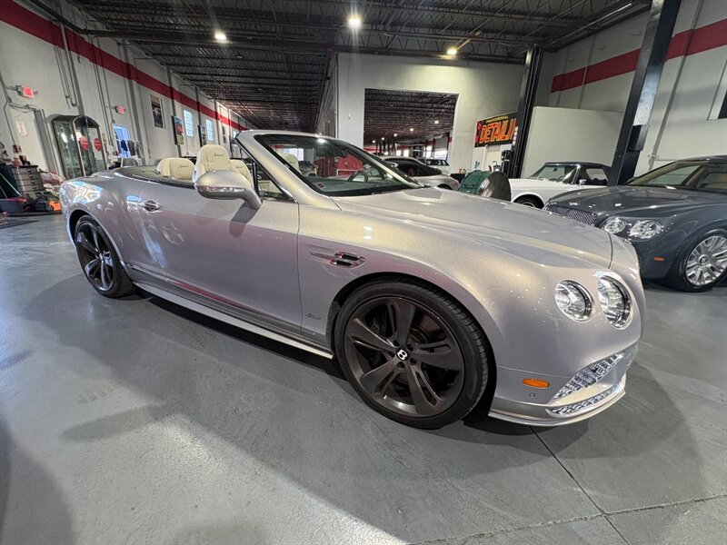 This Super Clean 2016 Bentley Continental GT Speed — 6.0L Twin Turbo W12 delivering 626 hp and 607 lb-ft, paired with an 8-speed dual-clutch transmission and all-wheel drive for effortless, high-speed cruising. Factory-equipped features include adaptive air suspension with selectable drive modes, full New market Tan leather interior with extensive hide coverage and wood veneer trim, power-adjustable heated and ventilated front seats with memory, multifunction leather steering wheel with paddle shifters, LED headlights with signature daytime running lights, parking sensors and rear-view camera, automatic climate control, keyless entry/start, comprehensive infotainment with satellite navigation, Bluetooth, USB/AUX inputs and premium sound, plus full safety systems (ABS, traction and stability control, multiple airbags). Finished in Silverlake Metallic, this example shows excellent overall condition with under 23,000 miles (averaging less than 3,000 miles per year). This Super Clean 2016 Bentley Continental GT V8 Convertible has Silverlake Metallic,