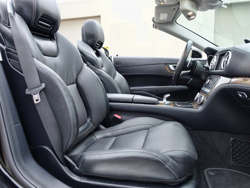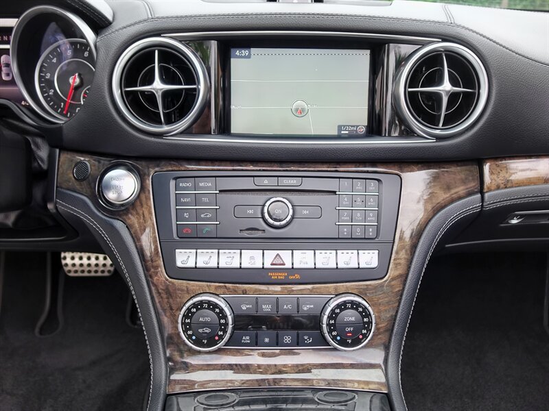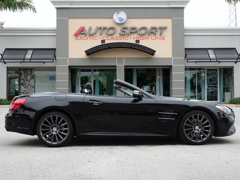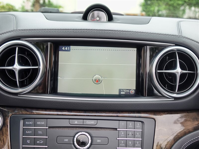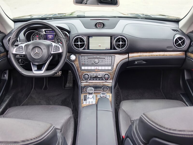 2017 Mercedes-Benz SL 450 — 3.0L Twin-Turbo V6 producing 362 hp and 369 lb-ft, mated to Mercedes’ 9-speed automatic transmission and rear-wheel drive. Factory equipment includes a power-operated retractable hardtop, premium leather seating with multi-way power adjustment and memory, heated front seats, dual-zone automatic climate control, and keyless entry/ignition. The vehicle is fitted with Mercedes-COMAND infotainment with central controller, Bluetooth connectivity and navigation capability, a selectable drive-mode system, adaptive suspension tuning, and a comprehensive safety suite (multiple airbags, ABS, electronic stability/traction control, rearview camera and parking sensors). Excellent overall condition with under 46,000 miles (averaging less than 5,000 miles per year).