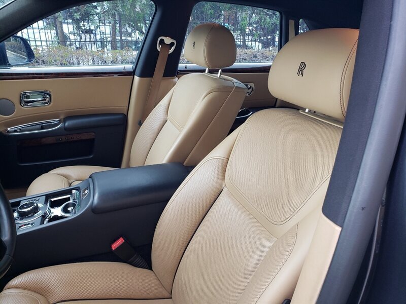 Experience luxury at its finest with the 2017 Rolls-Royce Ghost. Equipped with a powerful 6.6L Twin Turbo V12 engine delivering 563hp and 605ft. lbs. of torque, this vehicle ensures a smooth and exhilarating drive. The exterior boasts a sleek Moondust finish, complemented by a luxurious Tan interior. With a mileage of below 34,000 miles, averaging less than 4,000 miles per year, this Ghost is in impeccable condition. Enjoy a host of factory default features that elevate comfort and convenience, making every journey a truly indulgent experience.