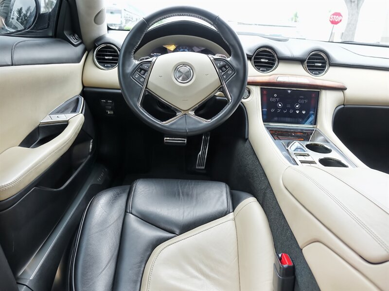 2018 Karma Revero finished with the Range-Extended Electric powertrain producing 403 hp and 981 ft-lbs of torque; this low-mile example has under 34,000 miles (averaging less than 4,000 miles per year) and is in excellent overall condition. Factory-standard luxury and comfort features include hand-stitched leather seating with heated and ventilated power front seats and memory, premium interior trim, and dual-zone automatic climate control. Standard technology and convenience items include an integrated touchscreen infotainment system with navigation, Bluetooth connectivity and smartphone integration, premium audio, rearview camera and parking sensors, keyless entry and push-button start, and power windows/locks. Safety and driving systems include ABS, traction and stability control, multiple airbags and tire pressure monitoring for confident, secure motoring.