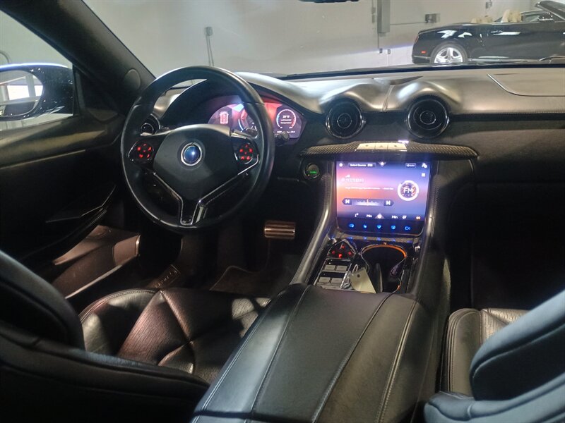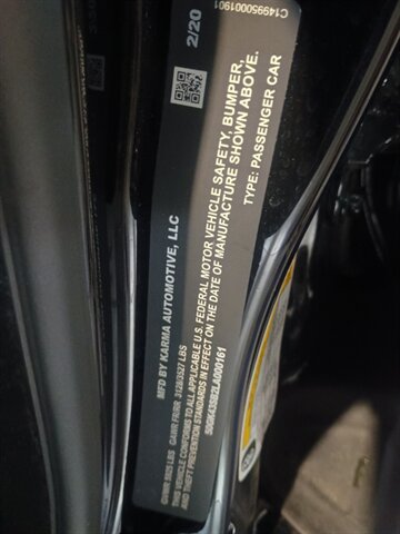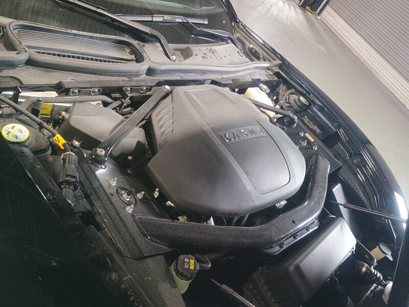 In 2019, an updated version, the Karma Revero GT, was revealed, using a three-cylinder 1.5 liter BMW engine as a range extender instead of the older model's drive motor GM engine. The new engine configuration launched in 2020, and it used to use the same B38 engine found in the BMW i8. Included in the changes is a larger battery. US $135,000 base vehicle list price. Three-cylinder BMW Twin Power turbocharged generator, 536 horsepower (400 kW) total power from two electric motors on the rear axle, 28 kWh (100 MJ) lithium-ion battery, 4.5-second 0–60 mph (0–97 km/h) acceleration time, 125 mph (201 km/h) top speed. The all-electric range is "up to" 80 mi (130 km), after which the vehicle smoothly switches to gasoline power. DRIVE SOMETHING THAT NOT EVERYONE HAS , A STUNNING EXAMPLE IN NERO WITH NERO INTERIOR, LIKE BRAND NEW WITH ONLY 11,165 ONE OWNER MILES.