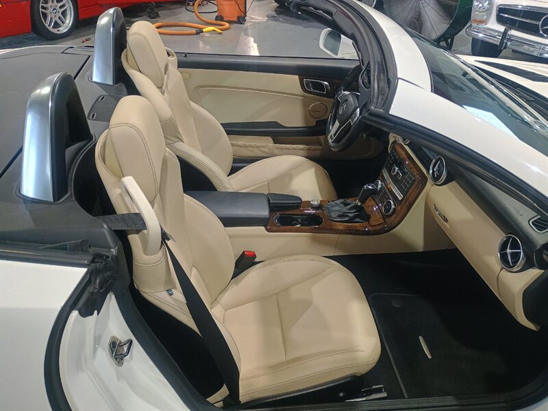 This Clean 2015 Mercedes-Benz SLK 250 in Polar White with Sahara Beige interior — excellent overall condition and exceptionally low mileage (under 53,000 miles; averages <5,000 miles/year). Powered by a 1.8L turbocharged I4 producing 201 hp and 229 lb-ft, paired with Mercedes’ 7-speed automatic transmission with ECO start/stop and rear-wheel drive. Factory equipment includes the power-retractable Vario-Roof hardtop, leather-appointed Sahara Beige seating with power adjustments, dual-zone automatic climate control, COMAND infotainment with Bluetooth and USB connectivity, cruise control, alloy wheels, automatic headlamps with LED daytime running lights, rain-sensing wipers, and comprehensive safety systems (multi-stage airbags, ABS, traction control and electronic stability control). This Clean 2015 Mercedes-Benz SLk 250 Convertible is Fully loaded ! This is an exquisite motor vehicle with WHITE on TAN leather interior. Has ONLY 52K miles and just about every possible option sure to please the most discerning buyer. Extended Warranty available, as well as trade-in are always welcome! We welcome your inspection .You will be impressed. Please feel free to contact US at 561-676-1912 or 954-401-4535