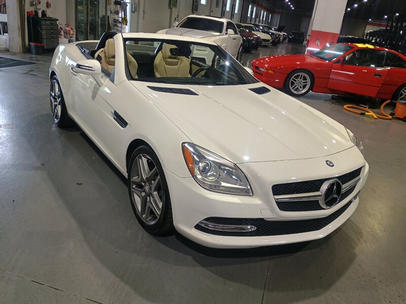 THIS CLEAN 2015 MERCEDES SLK250 52k MILES IN WHITE WITH TAN INTERIOR. WELL MAINTAINED CLEAN CARFAX FLORIDA CAR HARMAN KARDON PREMIUM SOUND!